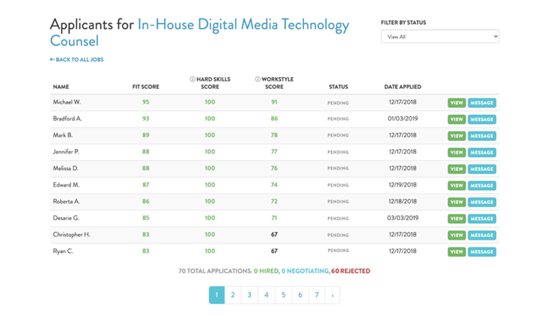 Our applicant view helps you to make data-driven hiring decisions and sort through potential candidates faster, decreasing the cost of your time and the effective hourly rate when hiring contract attorneys and paralegals.