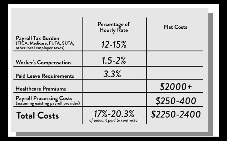 There are other tax and compliance costs to consider when determining the hourly rate that you can afford to pay contract attorneys or paralegals classified as independent contractors.