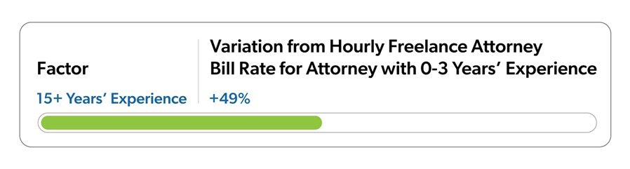 Many legal contract jobs are inherently for a limited time. Still, a very short-term project with limited hours can increase the bill rate due to the non-billable time inevitable to taking on a new engagement. For the same reason, long-term contract jobs where contract attorneys or paralegals can save time on business development and new client engagement, the hourly rate tends to drop. A role with limited hours—defined as less than 15 hours per week—commands an average premium of 20% over long-term, full-time role. Here are the differences to the overall average freelance attorney bill rate we’ve seen in our data: