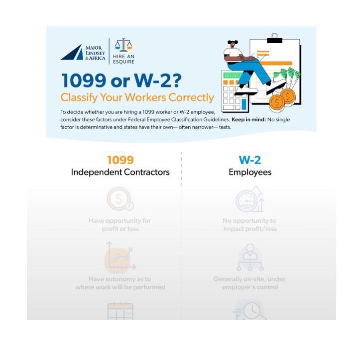 For federal compliance, the IRS uses a multi-factor test—where no single factor is determinative—that examines factors including control, supervision, the cadence of work, and opportunity for profit and loss. You can find more about the information that the IRS considers when making a classification determination here.